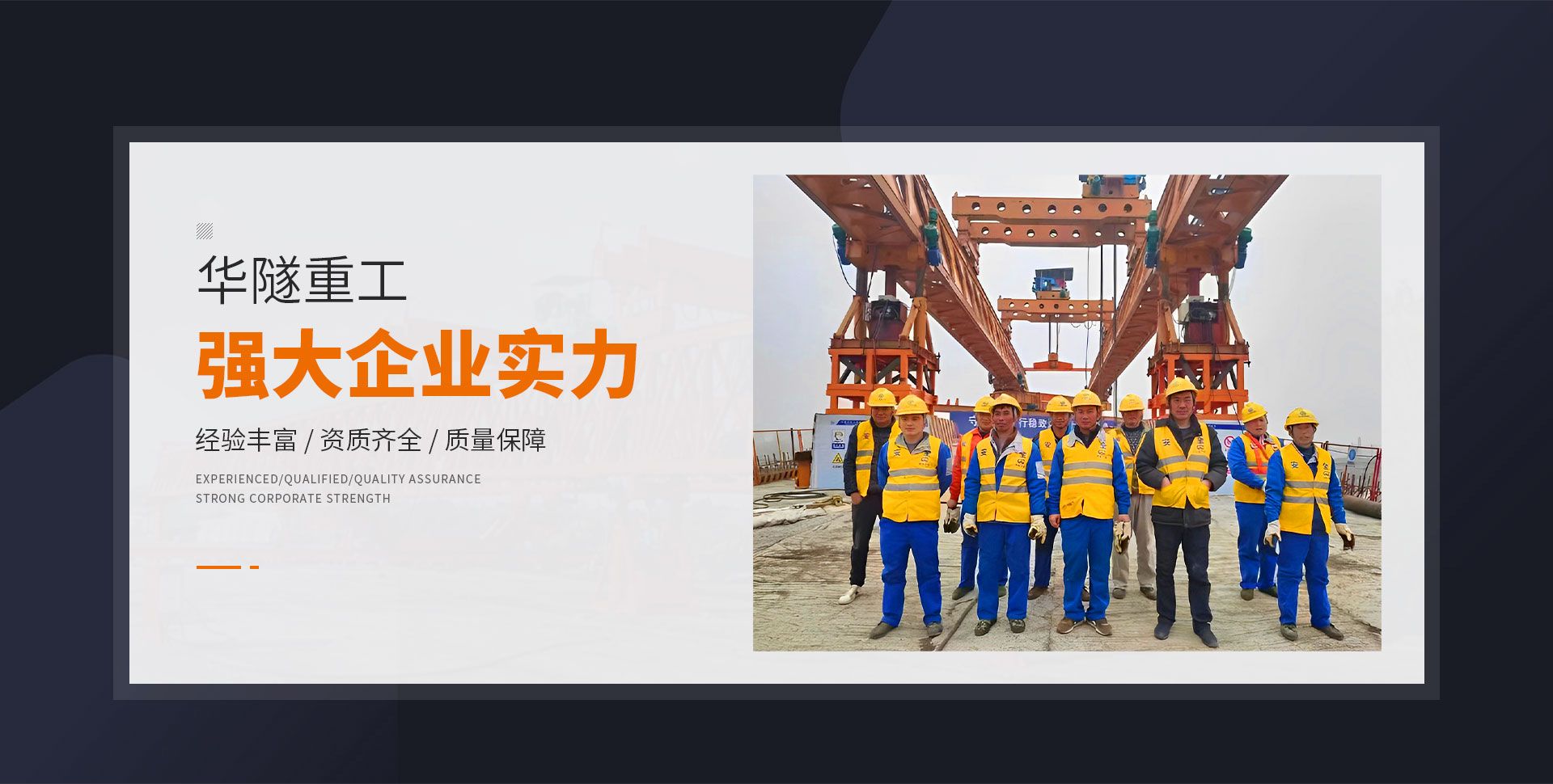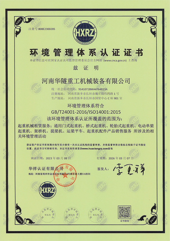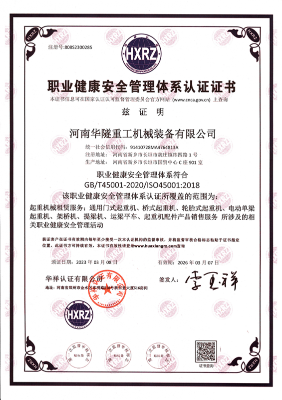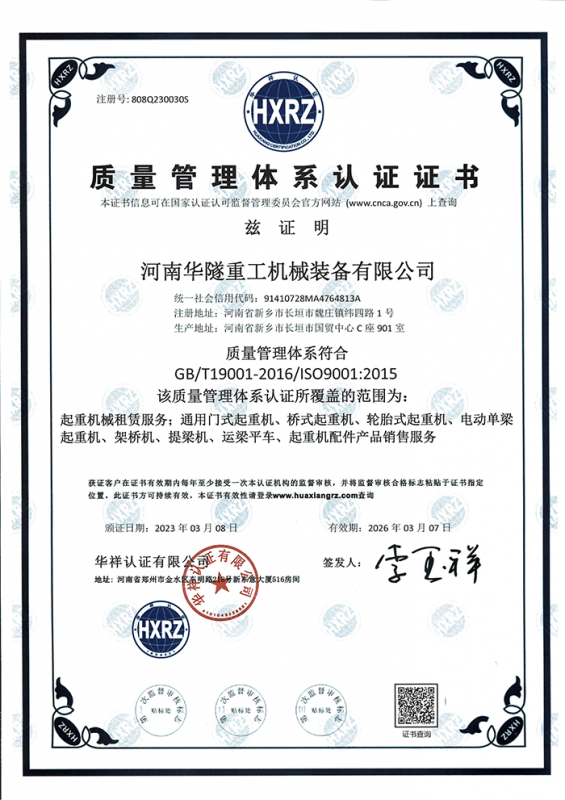 河南華隧重工機(jī)械裝備有限公司主要從事通用門式起重機(jī)、橋式起重機(jī)、電動(dòng)單梁起重機(jī),輪胎式起重機(jī)、架橋機(jī)、提梁機(jī)、遠(yuǎn)梁平車、鋼絲繩電動(dòng)萌蘆、卷揚(yáng)機(jī)、起重配件制造、銷售:起重機(jī)械租賃、安裝和維修,起重設(shè)備園收,機(jī)械設(shè)備維修,鋼結(jié)構(gòu)工程承包,橋梁工程及技術(shù)咨淘服務(wù),銷售五金制品、機(jī)電設(shè)備:建設(shè)工程監(jiān)理,建設(shè)工程設(shè)計(jì),各類工程建設(shè)活動(dòng),建筑勞務(wù)分包,建筑物折除作業(yè),施工作業(yè),工程管理服務(wù),土石方工程施工,裝如發(fā)運(yùn)。  公司已通過IS0國際質(zhì)量、環(huán)境、健康與安全三合一標(biāo)準(zhǔn)認(rèn)證,特種設(shè)備制造許可證和特種設(shè)備安裝改造維修許可證。擁有完熟的質(zhì)量管理體系。嚴(yán)格的管理制度,強(qiáng)大的生產(chǎn)能力和先進(jìn)的檢測(cè)手段,在保證產(chǎn)品質(zhì)量的同時(shí),也具備了極強(qiáng)的市場(chǎng)競(jìng)爭(zhēng)力。  公司堅(jiān)持科技創(chuàng)新為理念,產(chǎn)品質(zhì)量為核心,注重信譽(yù),建立了減信可靠、快捷、思速。便利周到的售后服務(wù)網(wǎng)絡(luò)。  我們擁有的技術(shù)專家和技術(shù)服務(wù)隊(duì)伍為客戶提供充善的售前技術(shù)支持和全天候的售后服務(wù)體系,讓您無后顧之憂,享受一站式的超值服務(wù)。  “華隧重工,伴您成功“是華隧重工永遠(yuǎn)的宗指,真被的希望與各界朋友攜手并進(jìn)。共創(chuàng)輝準(zhǔn)!